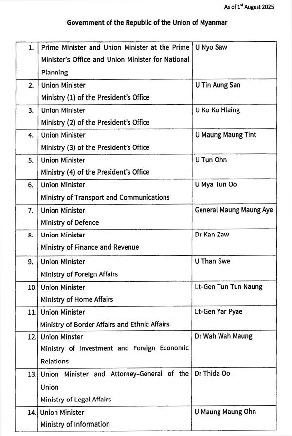 ပြည်ထောင်စုသမ္မတမြန်မာနိုင်ငံတော်၊ ပြည်ထောင်စုအစိုးရအဖွဲ့