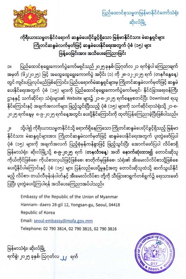 Copyright © 2022. Myanmar Embassy, Seoul.