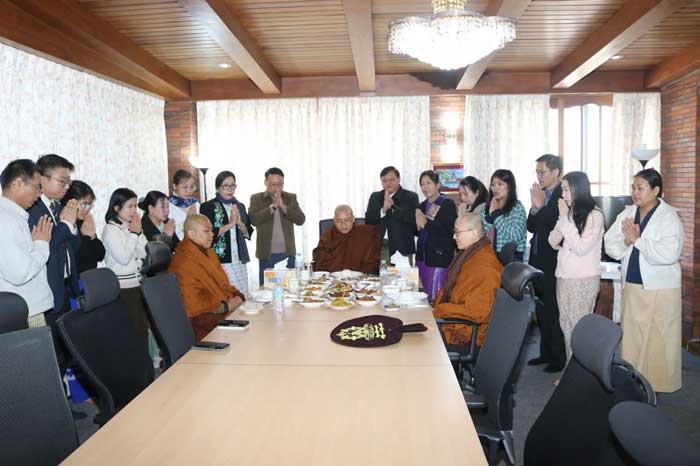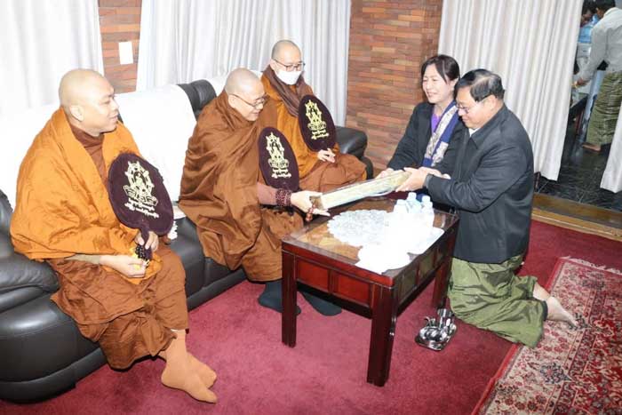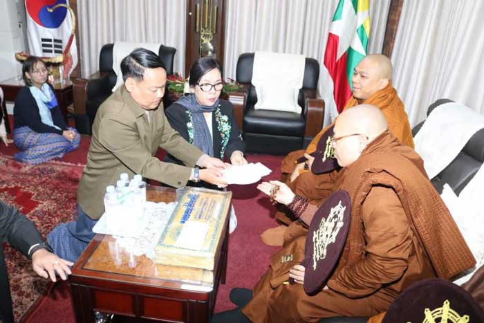 ကိုရီးယားသမ္မတနိုင်ငံတွင် ခေတ္တရောက်ရှိသီတင်းသုံးနေသည့် ဓမ္မကထိကဗဟုဇနဟိတဓရ၊ သာသန တက္ကသီလ ဓမ္မာစရိယ၊ သာသနတက္ကသီလ မဟာဓမ္မာစရိယ ဘွဲ့တော်ရ ဆရာတော် ဘဒ္ဒန္တဝိစိတ္တ (ကိုရီးယားဆရာတော်) နှင့် သံဃာတော် (၂) ပါးတို့သည် ၂၀၂၆ ခုနှစ်၊ ဖေဖော်ဝါရီ ၂၁ ရက်နေ့ နံနက်ပိုင်းတွင် ပြည်ထောင်စုသမ္မတမြန်မာနိုင်ငံတော်ဆိုင်ရာ မြန်မာသံရုံး၊ ဆိုးလ်မြို့သို့ ကြွရောက်ပြီး ပရိတ်တရားတော် ချီးမြင့်ခဲ့ရာ သံရုံးယာယီတာဝန်ခံ/ သံအမတ်ကြီးနှင့် ဇနီး၊ စစ်သံမှူး (ကြည်း၊ ရေ၊ လေ) နှင့် ဇနီး၊ သံရုံးနှင့် စစ်သံရုံး တို့မှ သံရုံးဝန်ထမ်းမိသားစုများက လှူဖွယ်ဝတ္ထုအစုစုတို့ကို ဆပ်ကပ်လှူဒါန်းခဲ့ကြပါသည်။ ထို့နောက် ဆရာတော်၊ သံဃာတော်တို့အား နေ့ဆွမ်းဆပ်ကပ်ခဲ့ကြပါသည်။